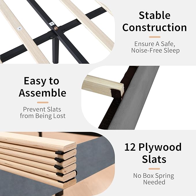- Robust Construction: This twin platform bed frame with headboard features a sturdy metal frame with center support legs and 12 straight slats, supporting up to 700 lbs without the need for a box spring, thus saving you time and effort