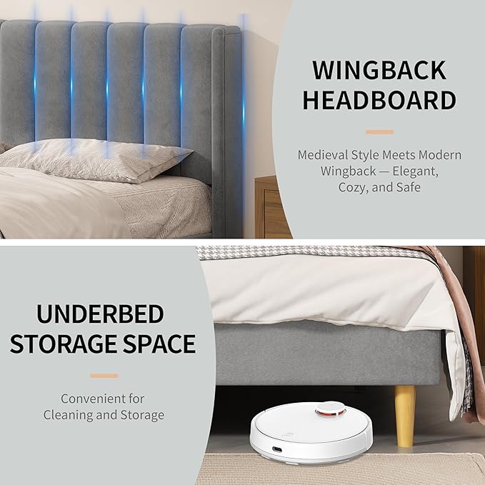 - Elegant Wingback Design: Combining medieval and modern styles, the wingback bed frame twin offers a comfortable backrest for relaxation. It adds an elegant and unique touch to your bedroom decor, enhancing the overall aesthetic appeal of your space