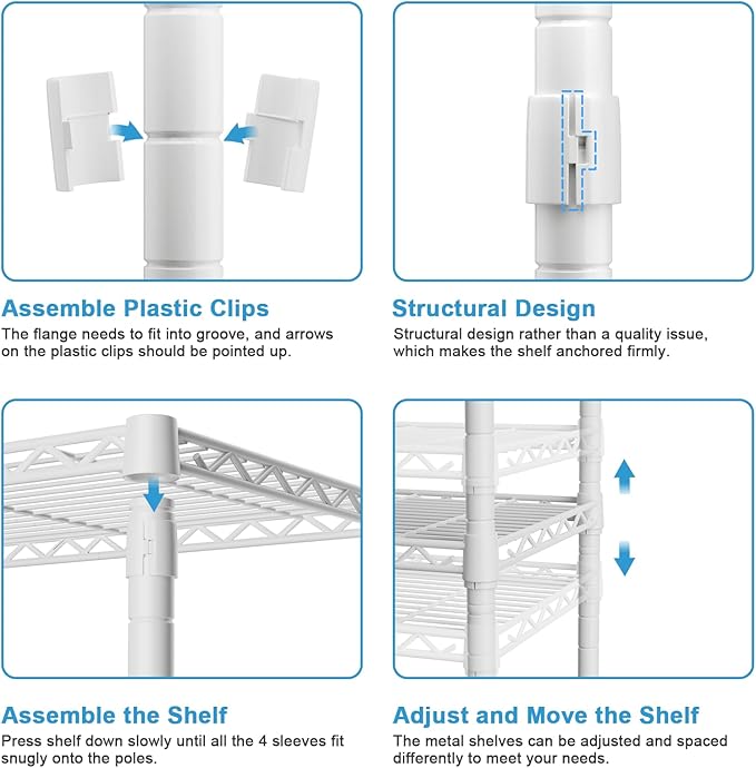 - Easy to Assemble: The 5-tier storage rack can be assembled quickly without other tools. No need to drill or mount it onto the wall. Read the user manual carefully for the assembly details