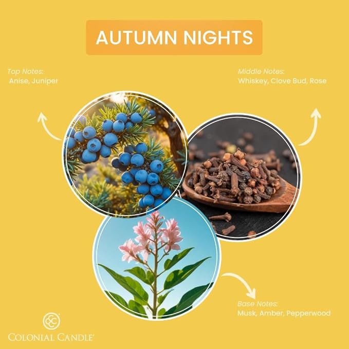 Colonial Candle Autumn Nights Scented Jar Candle, Pop of Color Collection, 3 Wick, Yellow, 14.5 oz - Up to 60 Hours Burn