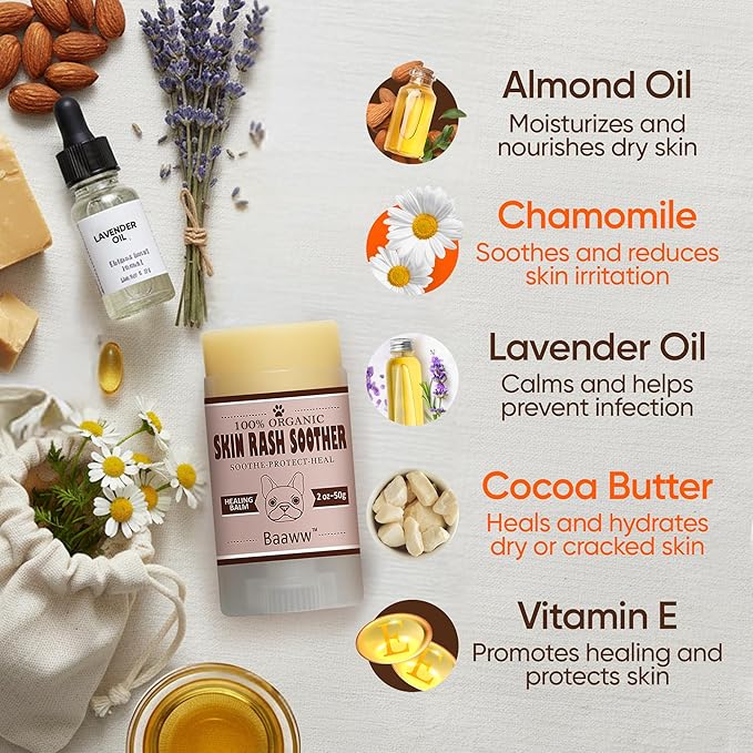 - DOG SKIN CARE ESSENTIAL: Baaww’s dog skin soother nourishes dry, itchy skin. This dog balm for skin irritation is a must-have dog skin care product, providing lasting comfort and protection for your pet’s skin.
