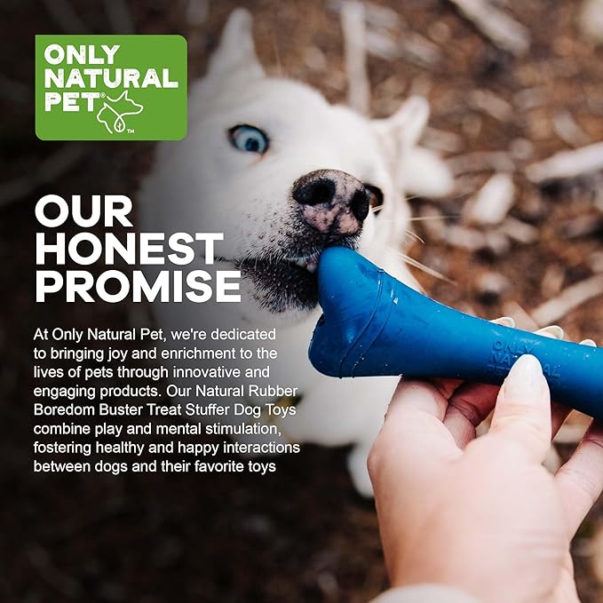 Only Natural Pet Rubber Boredom Buster Treat Stuffer Dog Toys - Interactive Stuffable Feeder Dispenser Fillable Durable Play Puppy Medium Large XS Chew Pup Hide Holder Easy Refill -BobbleBone/DarkBlue