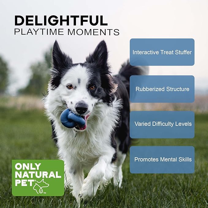 Only Natural Pet Rubber Boredom Buster Treat Stuffer Dog Toys - Interactive Stuffable Feeder Dispenser Fillable Durable Play Puppy Medium Large XS Chew Pup Hide Holder Easy Refill -TreatKnot/DarkBlue
