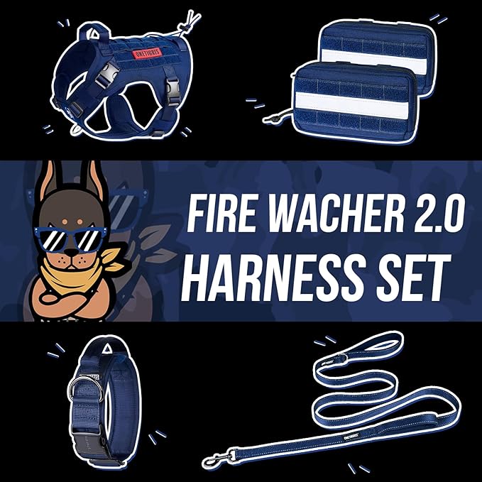 OneTigris Tactical Dog Harness Vest,No-Pull Service Dog Vest with Hook & Loop Panels,Adjustable Dog Vest Harness for Walking Hiking Training(Blue,M)