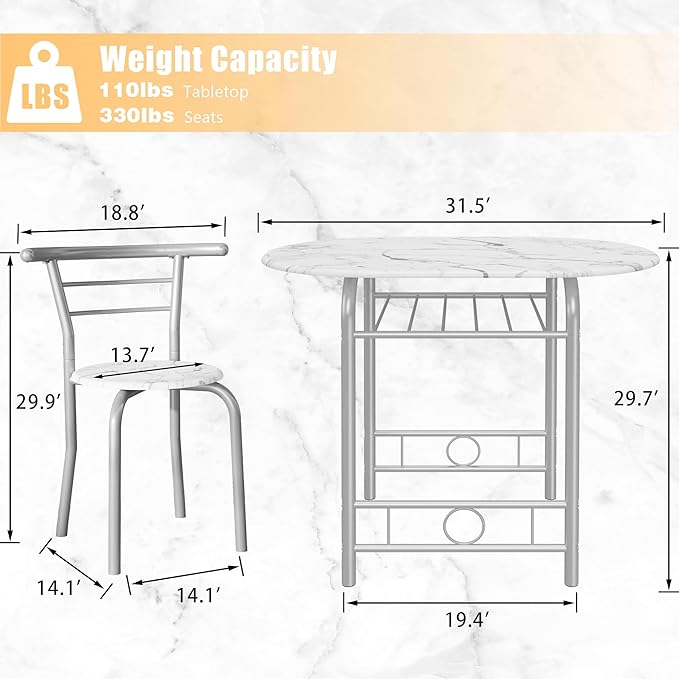 - Kitchen Table Set - Simple and modern design makes it perfect for any home decoration style. You can put them into kitchen room, dining room,breakfast nook, balcony or apartment,if you want to have a meal with your family or have a drink in your leisure time,it will be your best choose.