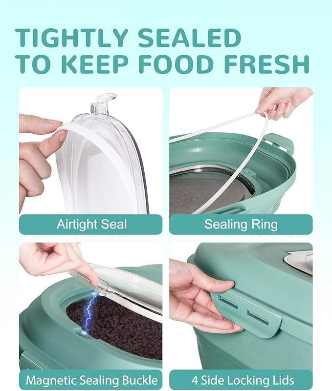 - SUPERIOR SEALING FOR FRESHNESS:The double airtight seals and 4 side locking lids offers excellent sealing ensures your pet's food stays fresh longer, free from moisture