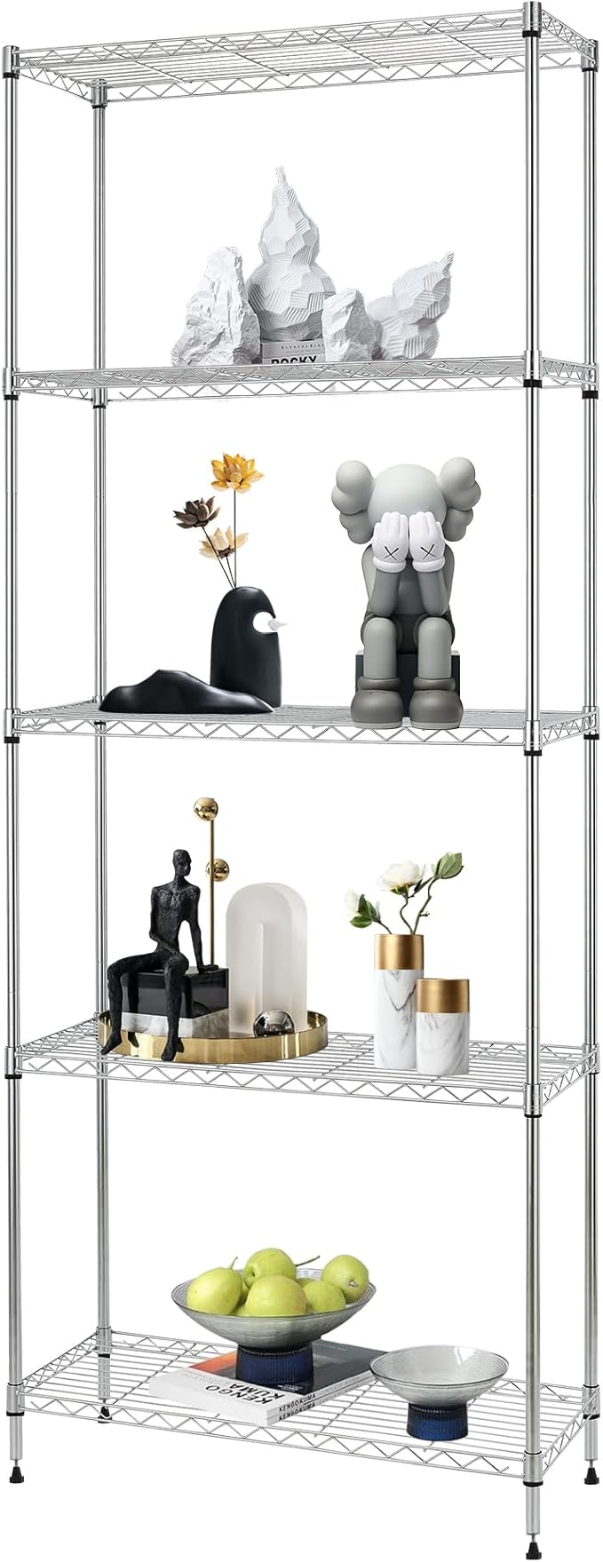FDW Shelves,Wire Shelving Utility Storage Shelves Shelving Unit NSF Certified Height Adjustable Metal 5 Tier Shelves Easy Assembly 24" L x 14" W x 60" H,Chrome