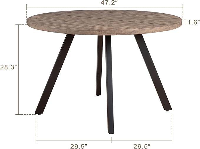 - 【Round Dining Table Size】Overall Dimensions of the dining table: 47.2” x 28.3” H (D x H). It can seat 4-6 people.