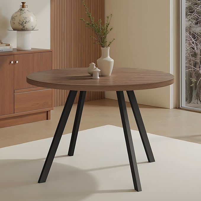 Round Wood Dining Table for 4-6, 47" Mid Century Modern Kitchen Table (Only Table), Brown