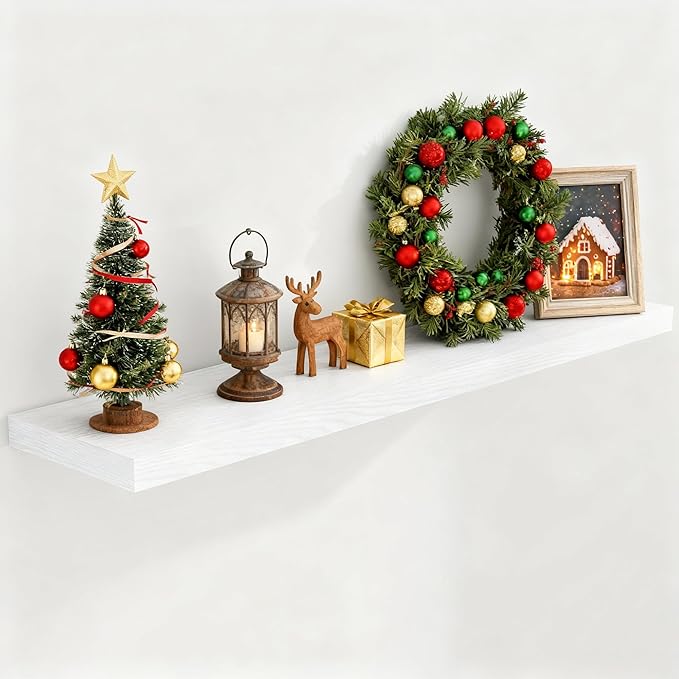 Fun Memories Farmhouse Floating Shelves for Wall, 48 x 9.3 Large Floating Shelf Wall Mounted, Rustic Wood Shelves for Bathroom, Kitchen, Living, Heavy-Duty Storage Deep Shelf for Books, Decor, White