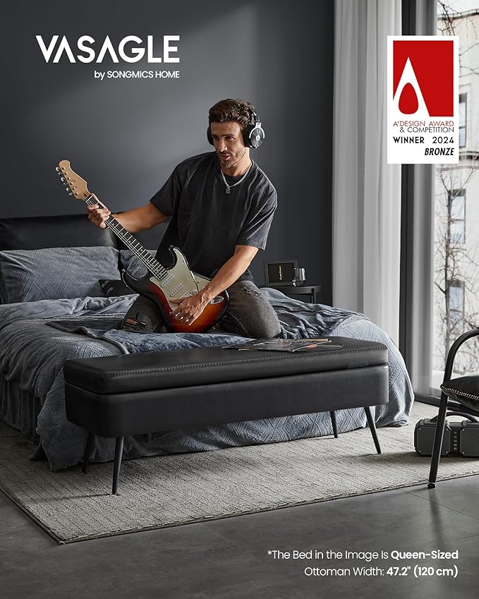 - [Style That Speaks] Recognized the Bronze A’ Design Award 2024, this storage ottoman from our VASAGLE EKHO Collection blends synthetic leather with refined stitching. A tangible homage to craftsmanship, it helps craft a home that speaks volumes about style