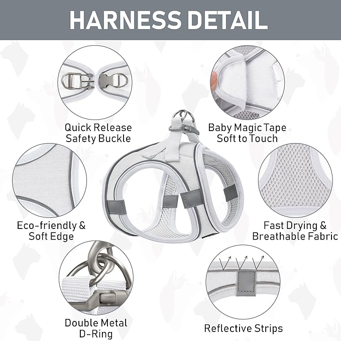 - REFLECTIVE: This Harness has reflective lines around and four large reflective points. Reflective strips deign reflect ambient light in low light conditions, making you and your pet safer when walking and moving around at night without worrying about blurred vision in the dark. ANTI-LOST ID TAG: You can write name, address, phone number or contact information, after put to ID tag. Anyone that finds your pet can contact you to return your pet by the information you wrote down.