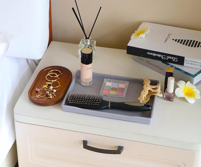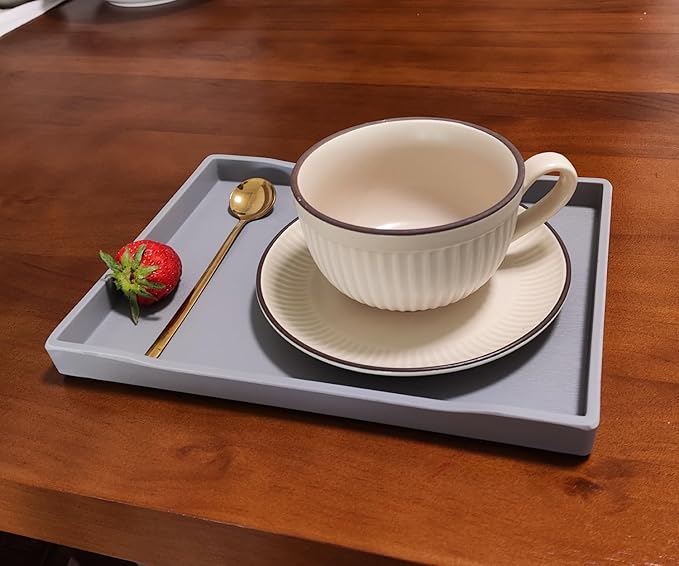 Gray Small Serving Tray (9.5 x 7 inch), Countertop Organizer for Bathtub Bathroom Vanity Items, Serving Accessory, Coffee, Drinks, Tea, Party, Spa, Perfume and Display Use.