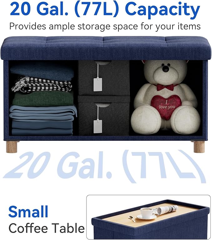 BRIAN & DANY 30 Inches Folding Storage Ottoman Bench, Ottoman with Storage Bench for Bedroom, Living Room, Entryway, Foot Rest with Legs, Blue