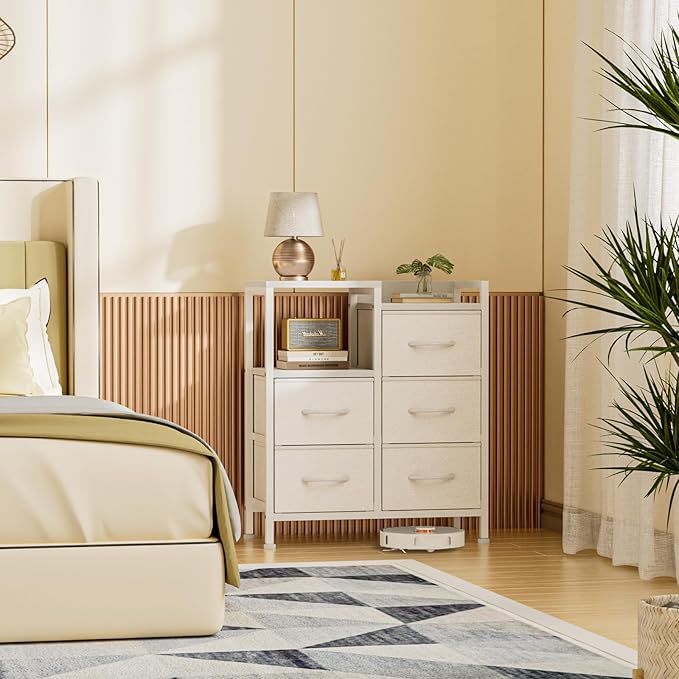 - 【Sufficient 5-Drawers Storage Space】Small white dresser drawer(NOT WOOD) provide enough storage space to store daily essentials and sundries. The thick wooden top is hard-wearing and waterproof, suitable for organizing clothes, toys, socks, etc.