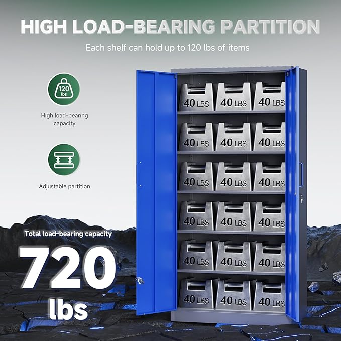- 『Large Storage Space』: Steel garage storage cabinets H71 * W32 * D16 inch , features 4 adjustable shelves, can hold up to 180 lbs;Perfect for use in homes, offices, garages, schools, shops, warehouses or other commercial spaces.