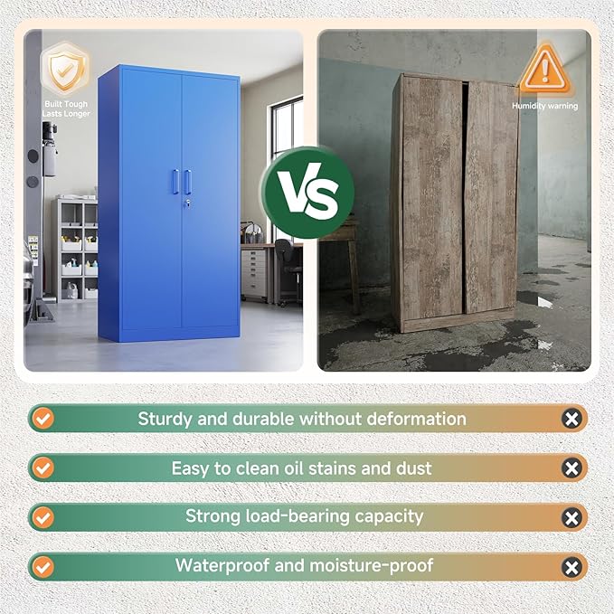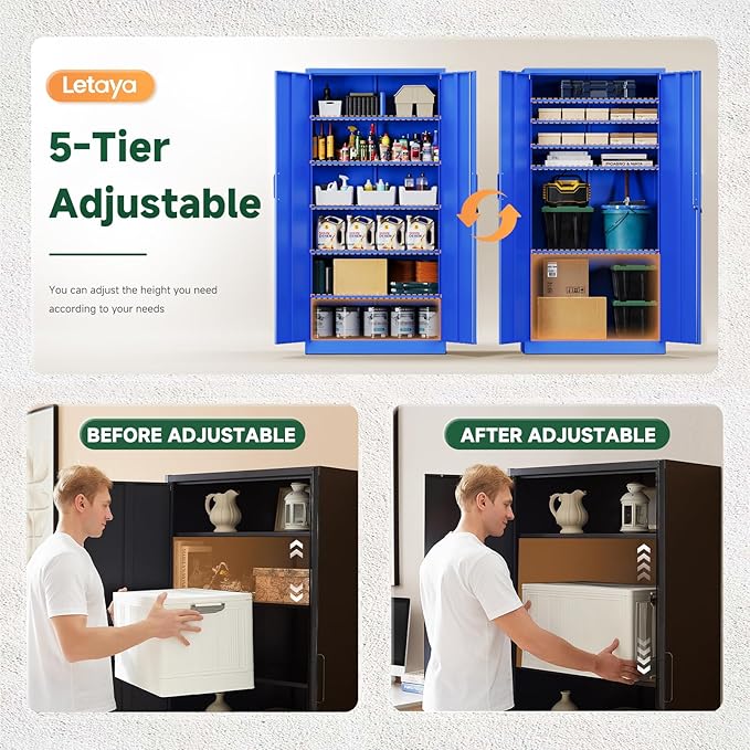 Letaya Metal Garage Storage Cabinets with Lock Door and Adjustable Shelves, Steel Tool Cabinets for Home,Office,Warehouse Organisieren (Blue)