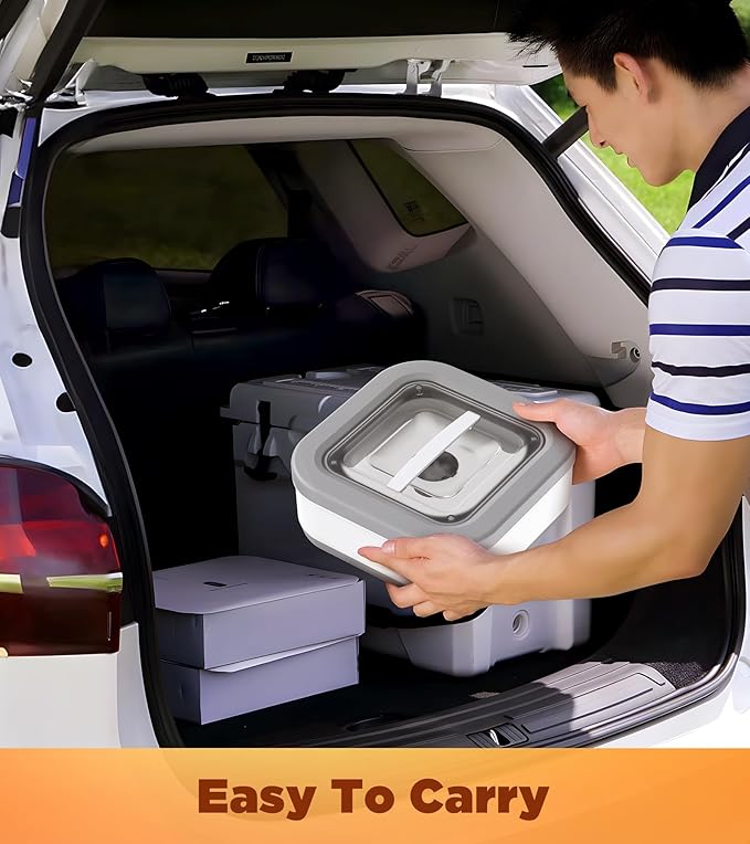 - ๐ ๐จ๐ฅ๐๐๐๐ฅ๐ ๐๐๐ฌ๐ข๐ ๐ง - Our dog food container is designed to be easily foldable, allowing you to carry, move, or store it with utmost convenience. Compact size of 11.2"*11.2"*3.9" when folded, and expands to 11.2"*11.2"*9.8" when in use, providing a maximum capacity of 14 lbs.