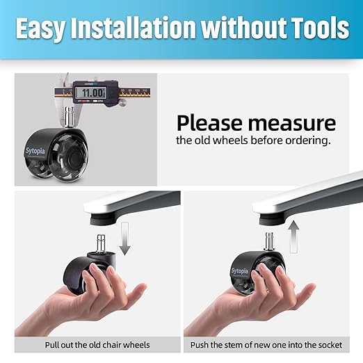- 【No Scratch for All Floors】Our office chair rollerblade wheels are made of high-quality rubber office chair wheels, guaranteeing that they won't leave any scratches or marks on any type of flooring, including hardwood, carpet, tile, laminate, and more. Say goodbye to office chair mats - you won't need them anymore.