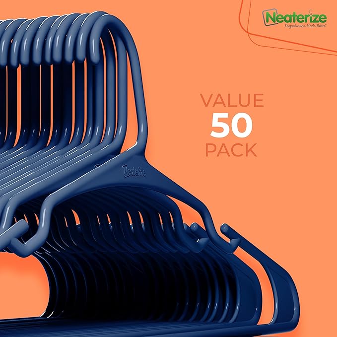 NEATERIZE Clothes Hangers 50 Pack Navy - Plastic Hangers - Ganchos Colgar Ropa
