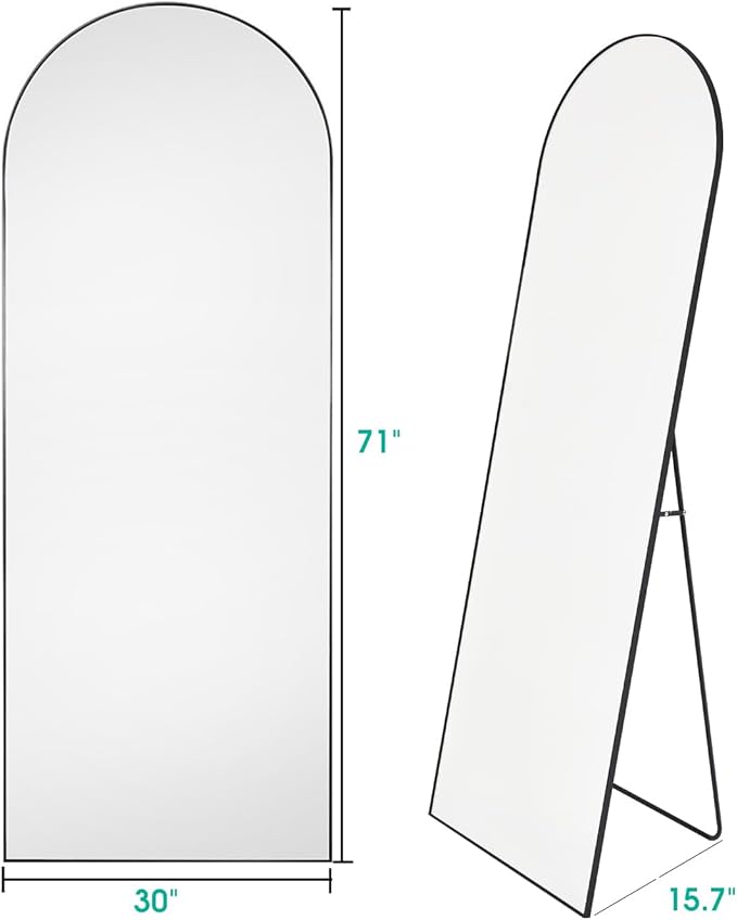 Arched Floor Mirror, 30" x 71" Oversized Full Body Mirror, Freestanding, Wall Mounted for Bedroom, Black