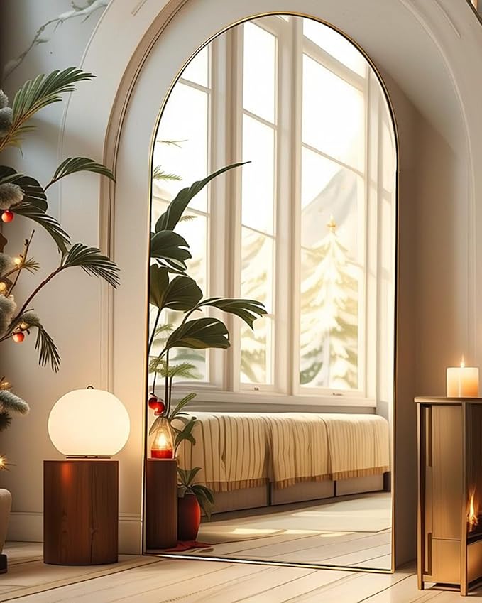 Gold Arch Mirror - 34in x 76in Freestanding Full Body Mirror, Wall-Mount Option for Bedroom
