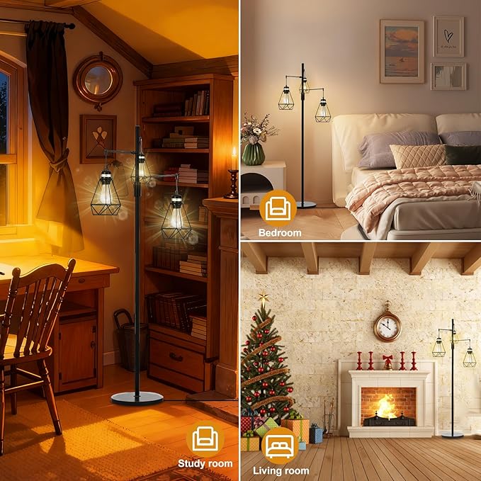 - Energy-Efficient LED Bulbs Included: Comes with 3 Edison-style LED bulbs (9W, 30,000-hour lifespan) that deliver bright, flicker-free illumination. These energy-saving bulbs light large spaces efficiently with low heat output, protecting eyes and reducing costs—perfect for this 3 light floor lamp.
