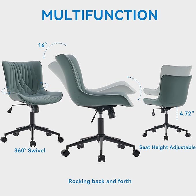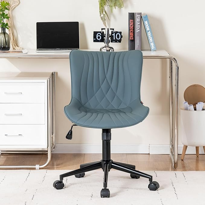 YOUNIKE Office Chair Armless Desk Chair with Wheels, Home Office Computer Task Chair, Modern Faux Leather Upholstered Vanity Chair, Adjustable Swivel Rolling Office Chairs, Slate Blue