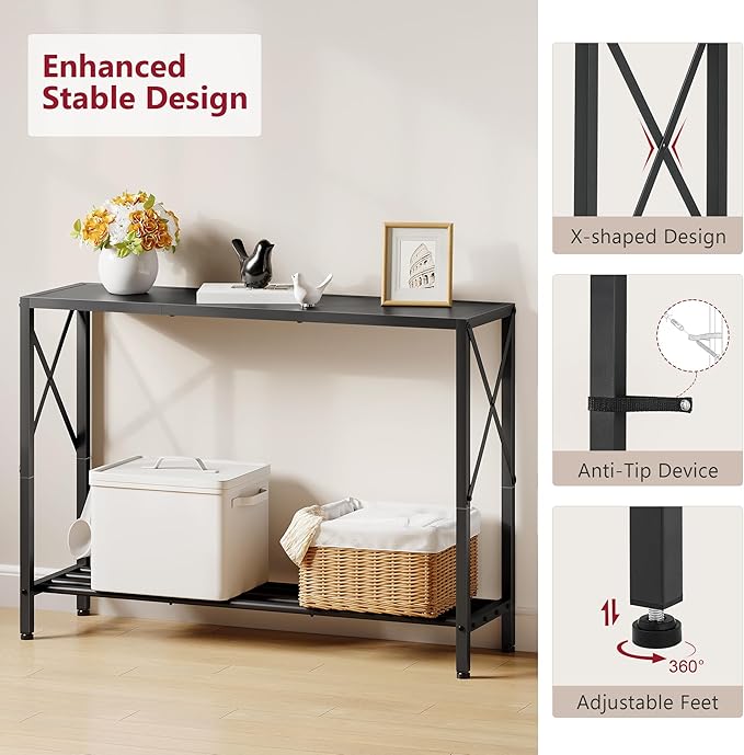 Tajsoon Console Table, 2-Tier Entryway Table, 41.8”L Narrow Sofa Tables with Shelves, Behind The Couch, for Entrance, Hallway, Living Room, Foyer, Corridor, Office, Black