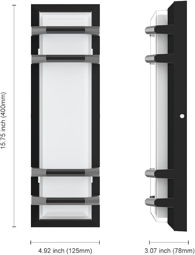 - 【LED Outdoor Wall Sconces】— Die-cast aluminum + acrylic material, double-layer lampshade, IP65 waterproof. Dimmable, with no motion sensor.