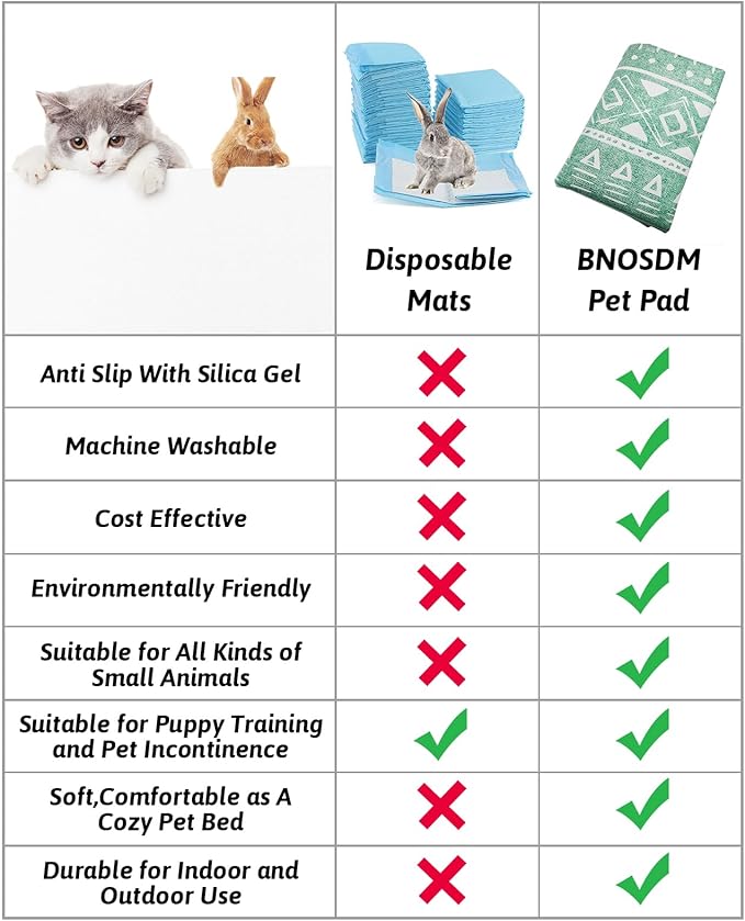 - Multi purpose: BNOSDM 79 x 55 inches rug for bunny can be used as a habitat decoration for dog kennels; cat litter boxes; crates. An ideal big bunny cage mat liner for guinea pigs; rabbits; ferrets; chinchillas; cats; dogs
