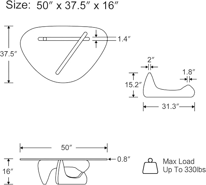 - Product Dimensions : 50"D x 37.5"W x 16"H