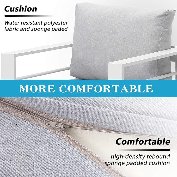 - 100% ALUMINUM- It’s the fully welded PURE ALUMINUM frame that distinguishes our patio furniture set from the other metal furniture. Standing out in fine techniques such as anodization surface treatment and richly powder-coated finish, the lighter-weight outdoor patio furniture set is crafted to stand the test of time without fading, molding, or rusting.