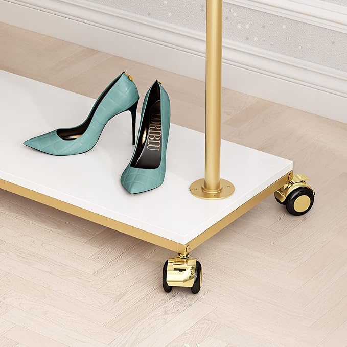 - Great Storage Solution: This gold clothing rack is equipped with single bar and bottom shelf, creating plenty of space for storage your garment, shoes, handbags and boxes, making your room more neat and tidy.