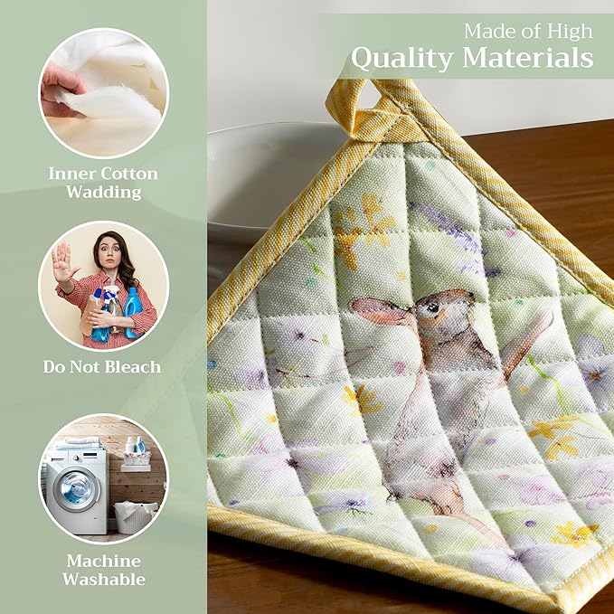 - 100% Quilted cotton: Made from premium quilted cotton, our pot holder ensures safe handling of hot pans or dishes. The soft, durable build provides excellent heat resistance and grip—perfect for everyday cooking and baking needs