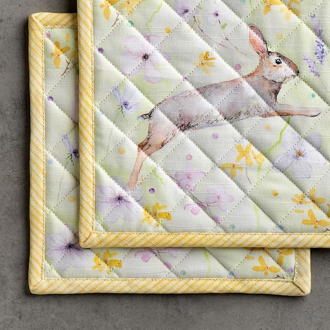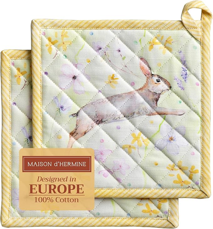 Maison d' Hermine Pot Holders Set 100% Cotton Heat Resistant Potholders 8" x 8" Hot Pads with Loop BBQ, Cooking, Baking, Grilling, Kitchen, Handling Hot Pans Spring/Summer (Pack of 2, Easter Zest)