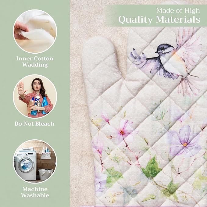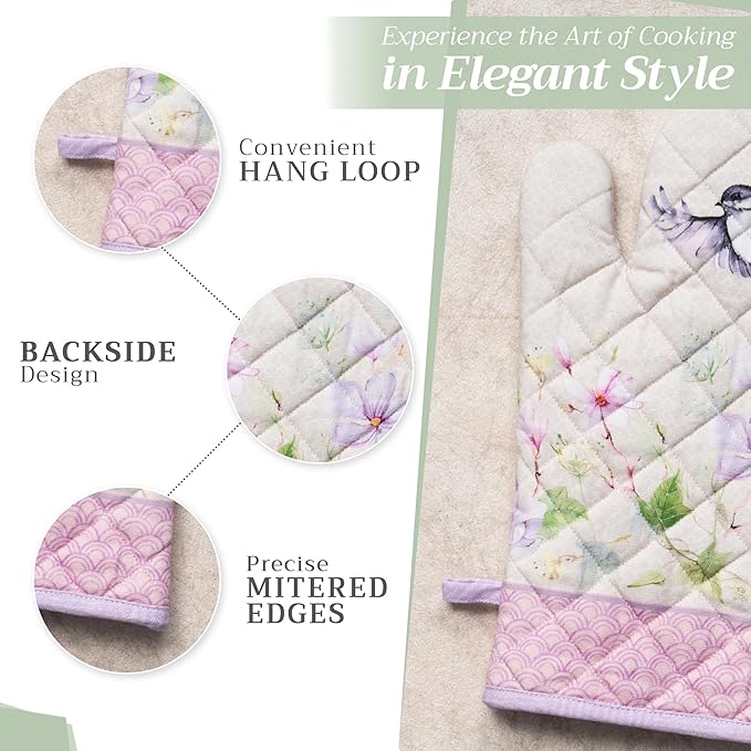 Maison d' Hermine Oven Gloves 100% Cotton Oven Mitt 7" x 13" with Loop Heat Resistant, BBQ, Cooking Gloves, Baking, Grilling, Kitchen, Handling Hot Pans Spring/Summer (Pack of 1, Magnolia Mornings)