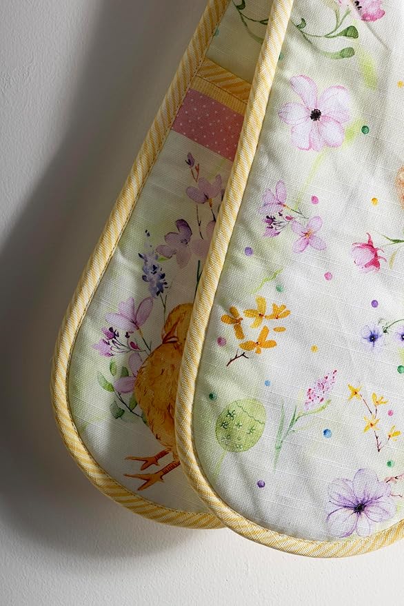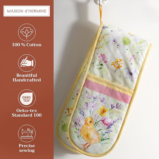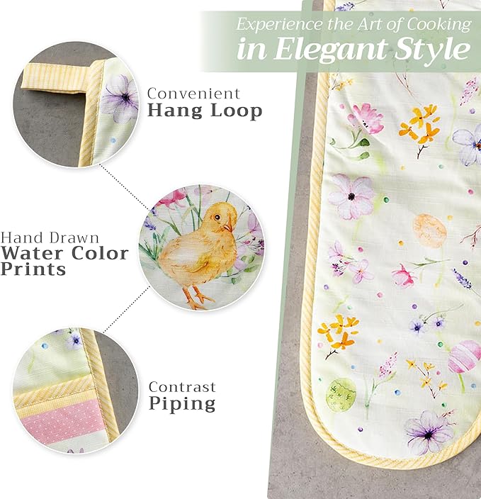 Maison d' Hermine Double Oven Mitts 100% Cotton 7"x35" Double Oven Mitt Heat Resistant BBQ Cooking Gloves with Loop, Baking, Grilling, Home, Kitchen, Handling Hot Pans Spring Summer (Easter Zest)