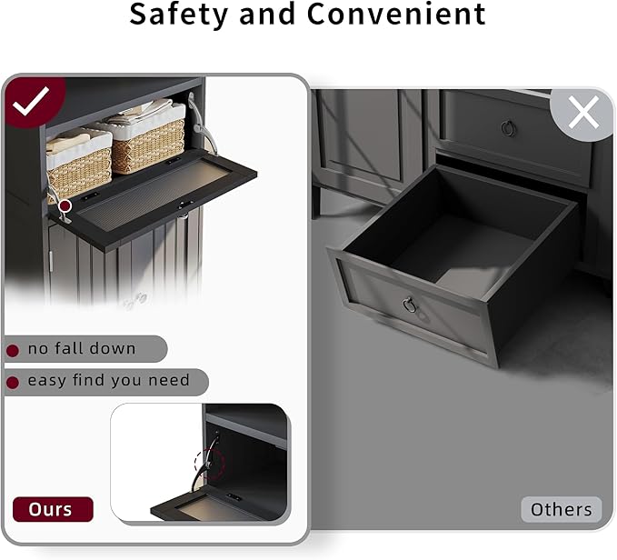 - 【Multi Zone Storage】:Bathroom floor cabinet designed clever storage space. Unquie flip glass doors and 2-door cabinets with adjustable shelves capable of storing items of various sizes, easy to handle. bathroom cabinets freestanding have an additional open shelving that effectively utilizes vertical space, making it perfect for small bathroom spaces. A smooth countertop match with embellishments will light up your personalized bathroom