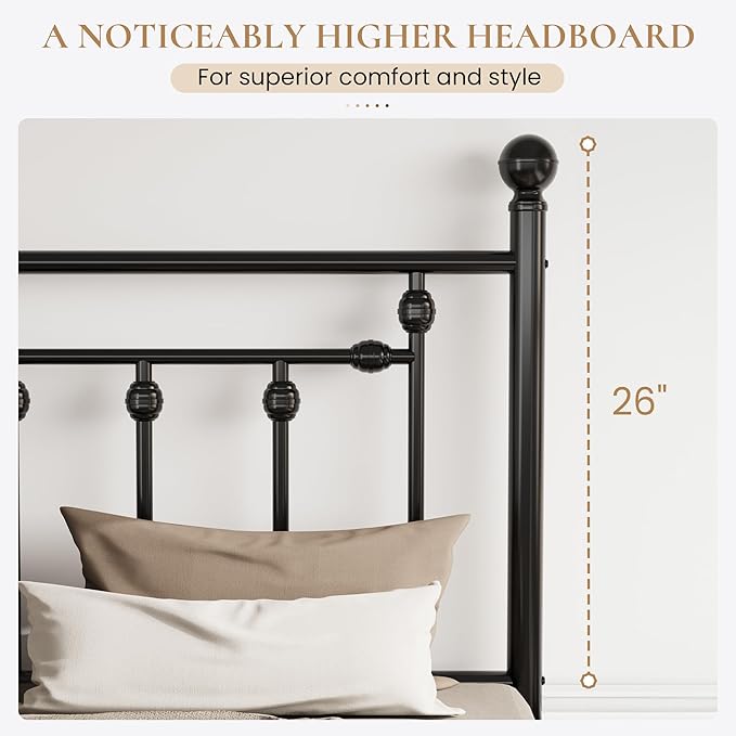 SHA CERLIN 14'' Full Size Metal Platform Bed Frame/Victorian Headboard and Footboard/Steel Slats Mattress Foundation for Storage/No Box Spring Needed/Noise Free/Black