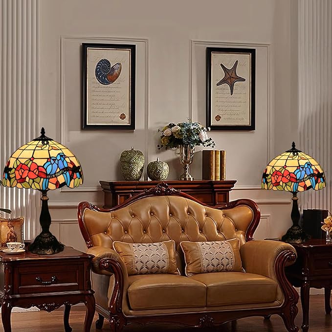 - Beautiful Tiffany Design Hand-made Stained Glass Shade...Tuomoxte Tiffany Style Table Table Lamp For Living Room,Handcrafted with vibrant, fade-resistant stained glass lampshade, the Tiffany Bird In Flowers Real Stained Glass Table Lamp is not just a lighting fixture, but also a work of art that will add elegance and beauty to any space. Its timeless design ensures long-lasting appeal.