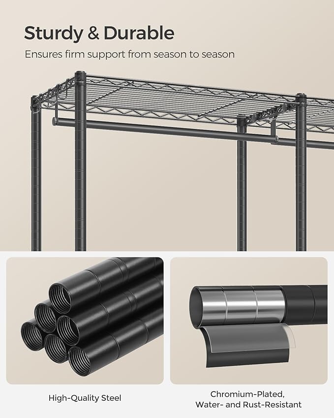 SONGMICS Portable Wardrobe Closet Heavy Duty Clothes Rack, Freestanding Closet Organizer,15.8 x 68.9 x 70.9 inches,Metal Garment Rack with Adjustable Wire Shelves, Dividable, Ink Black ULGR431B01
