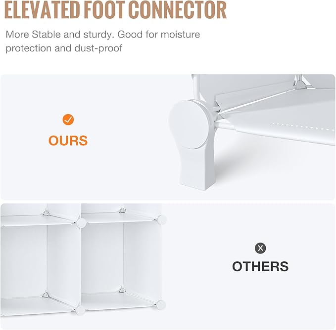 - 【No Fear of Dust】The higher legs raise the cube organizer from the floor, giving a light look, making it more stable and not easy to get wet or dust. And the plastic panels of the cube bookshelf are waterproof and easy to clean, making having an organized life much easier!