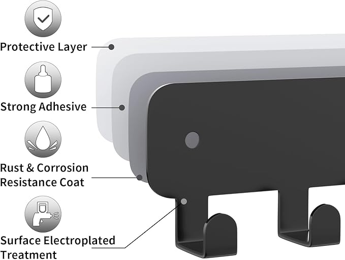 - 【Heavy Duty Adhesive】High-strength adhesive supports up to 6 kg when properly installed, keeping your essentials safe and within reach