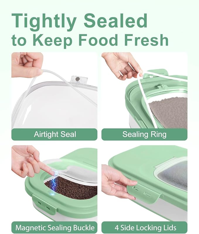 - Superior Sealing for Freshness: Our rice storage container is designed with a double airtight seal and 4 side locking lids, ensures your pet's food stays fresh longer, free from moisture