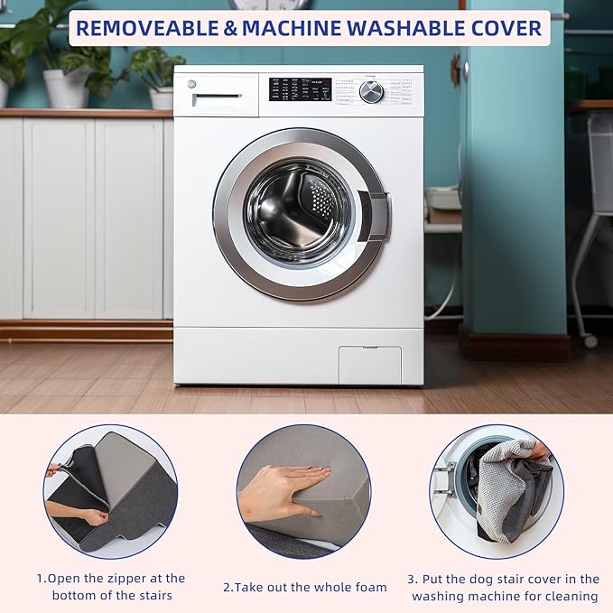 - 【EASY TO CLEAN】The dog step has a removable washable cover made of bonded fleece that can be hand washed or machine washed, so you don't require spending a lot of time cleaning it. It's very convenient