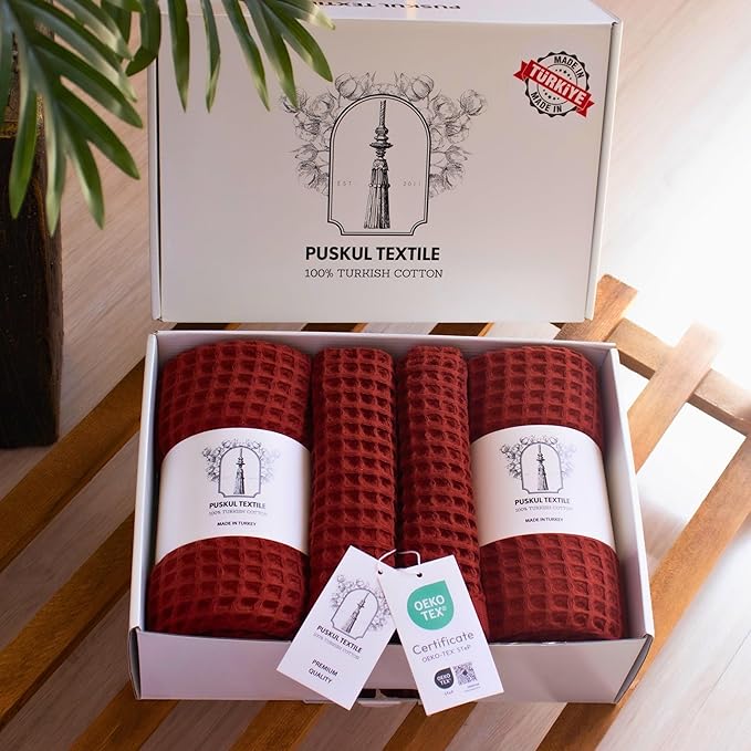 - 🔹PURE 100% TURKISH COTTON: Experience the natural comfort and incredible feel of our luxurious Puskul Tekstil waffle weave Turkish towels, crafted from organic 100% Turkish cotton. 🔹MADE IN TURKEY: Experience the difference of genuine Turkish mastery. Every Puskul Tekstil premium quality Turkish cotton waffle towel set is meticulously made in Türkiye under strict OEKO-TEX Standards, showcasing high-quality craftsmanship from its rich Turkish heritage