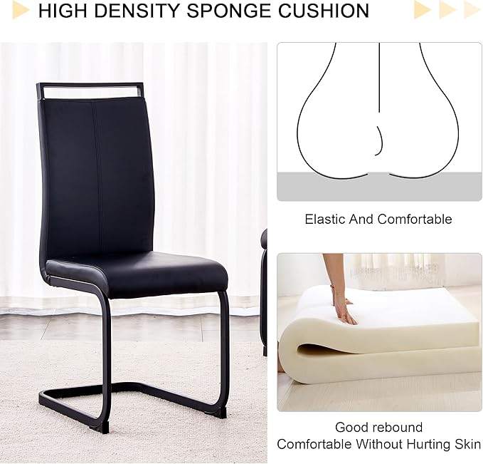 - 【Comfortable Faux Leather Dining Chairs】The dining chairs are ergonomically designed with a curved backrest, which ensures comfort throughout the day. High-quality pu leather cover for more luxury. The surface of the dining chair is made of waterproof leather, which is easy to clean and maintain.