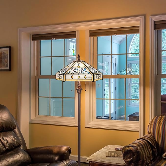 Capulina Tiffany Lamp Stained Glass Floor Lamp 2-Light 16X16X63 Inches Mission Hexagon Tiffany Style Standing Reading Lamp for Living Room Bedroom Home Office