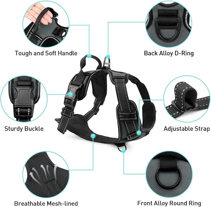 - Safety Details: The 360° highly reflective strips around the pet harness provides good visibility in the dark. Strengthen and widened handle allows you with maximum space to control your dog while walking through a crowd or walking past another dog